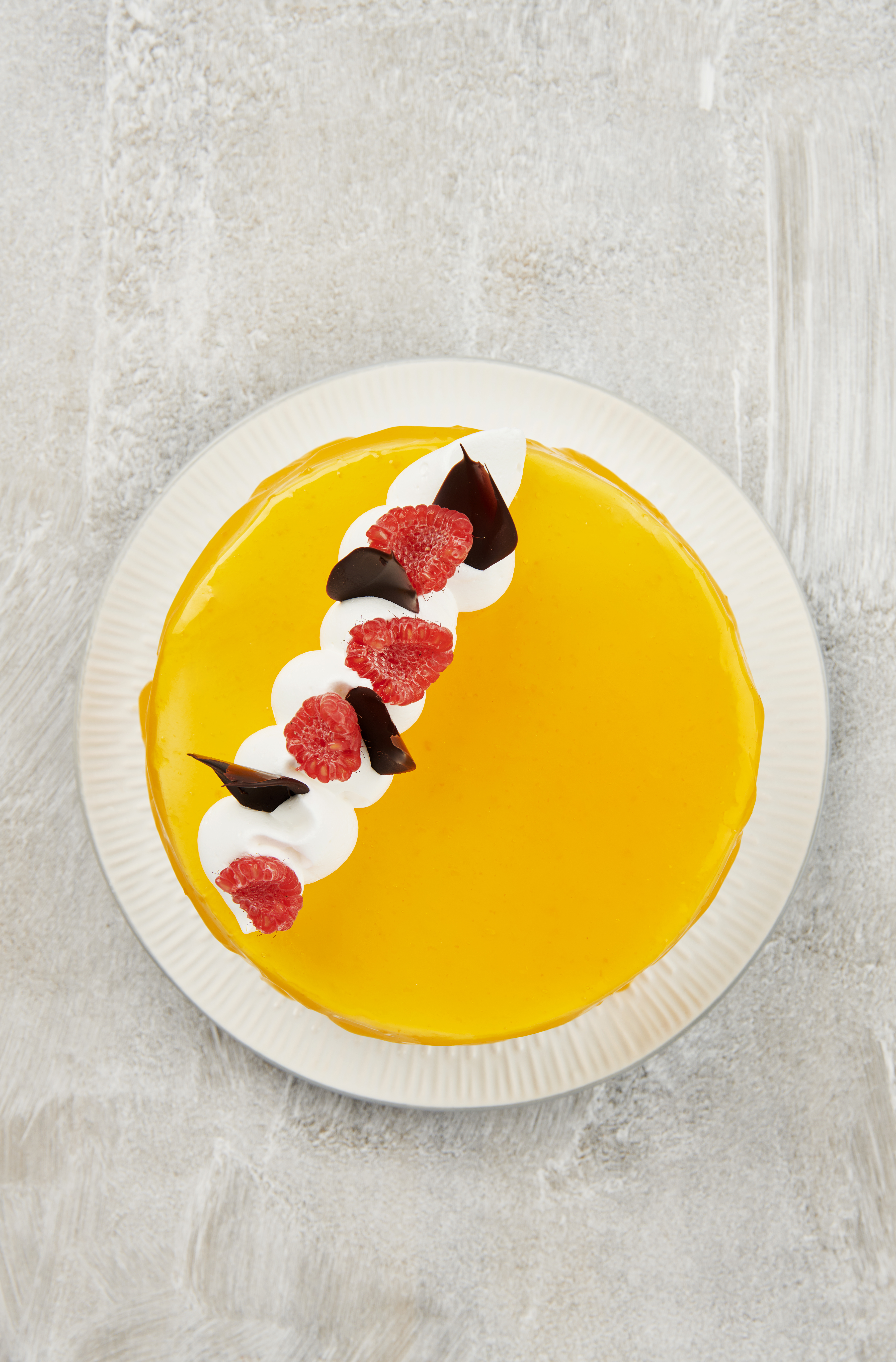 Gel cremoso de fruta pronto a usar, com raspas e sumo de laranja, usado na decoração e recheio de bolos e semi-frios.