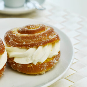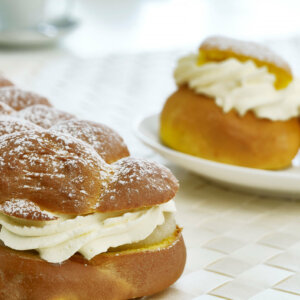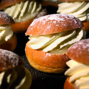 Semlefyllning med mandelbitar och en hög halt av god bakmassa.